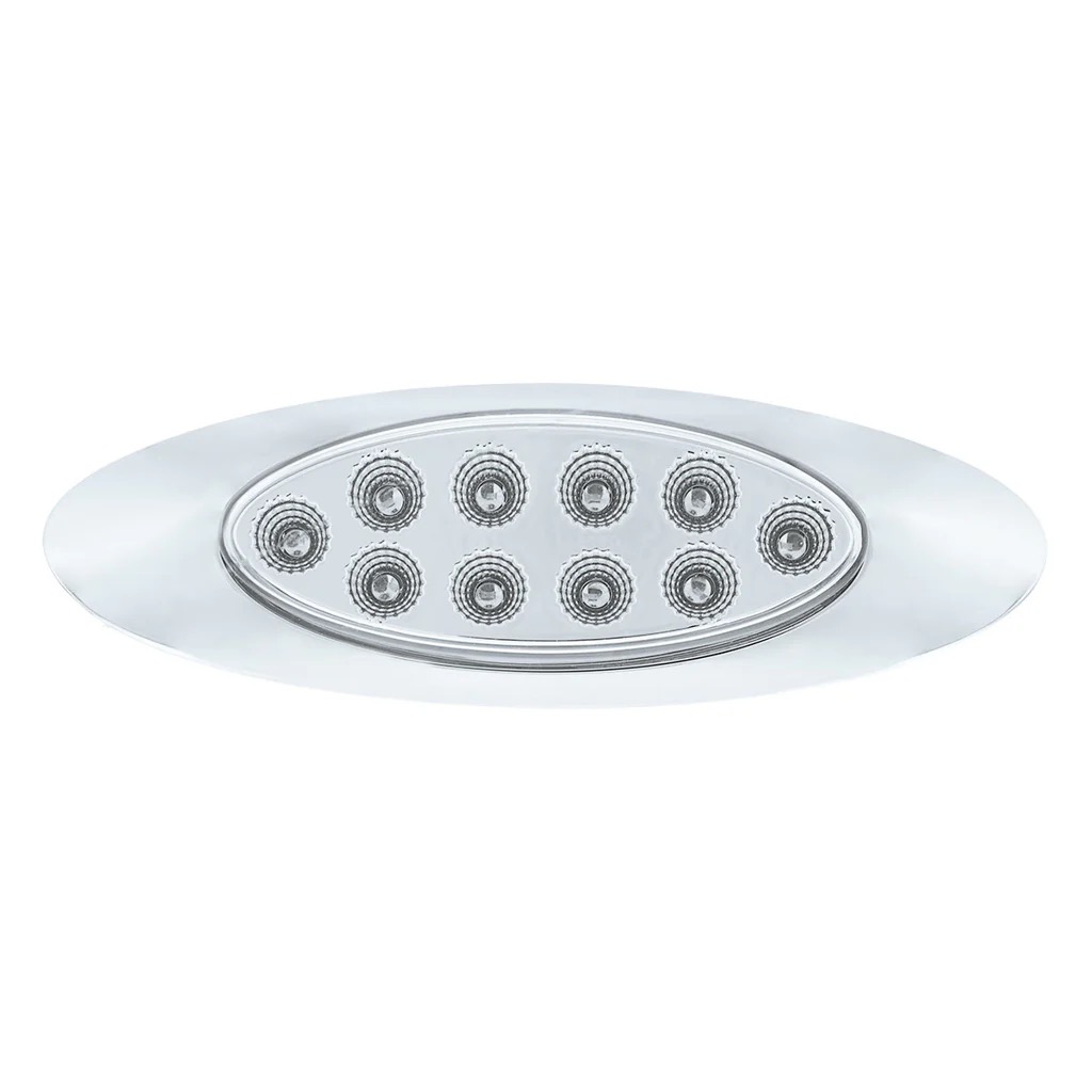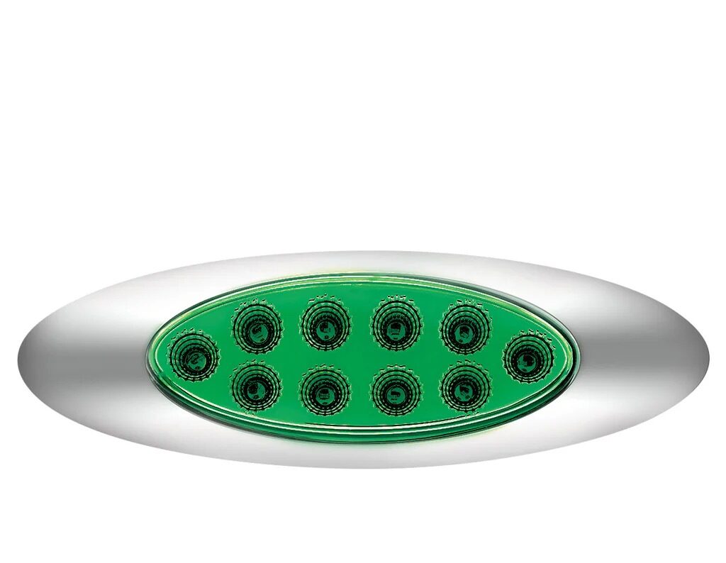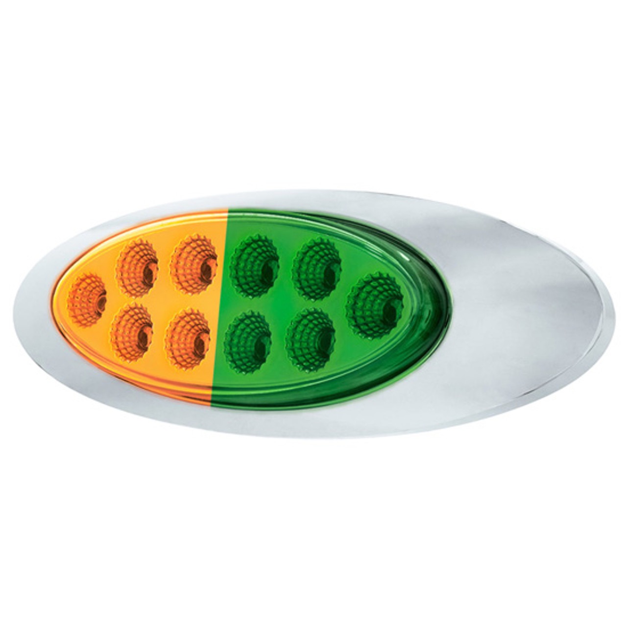 10 Led Oval Double Fury Light With Clear Lens & Chrome Bezel (Clearance/Marker) – Amber & Green Led/Clear Lens