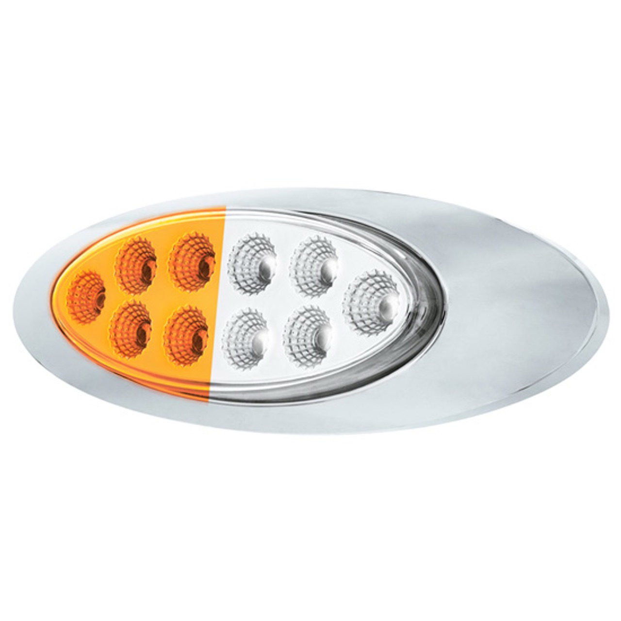 10 Led Oval Double Fury Light With Clear Lens & Chrome Bezel (Clearance/Marker) – Amber & White Led/Clear Lens