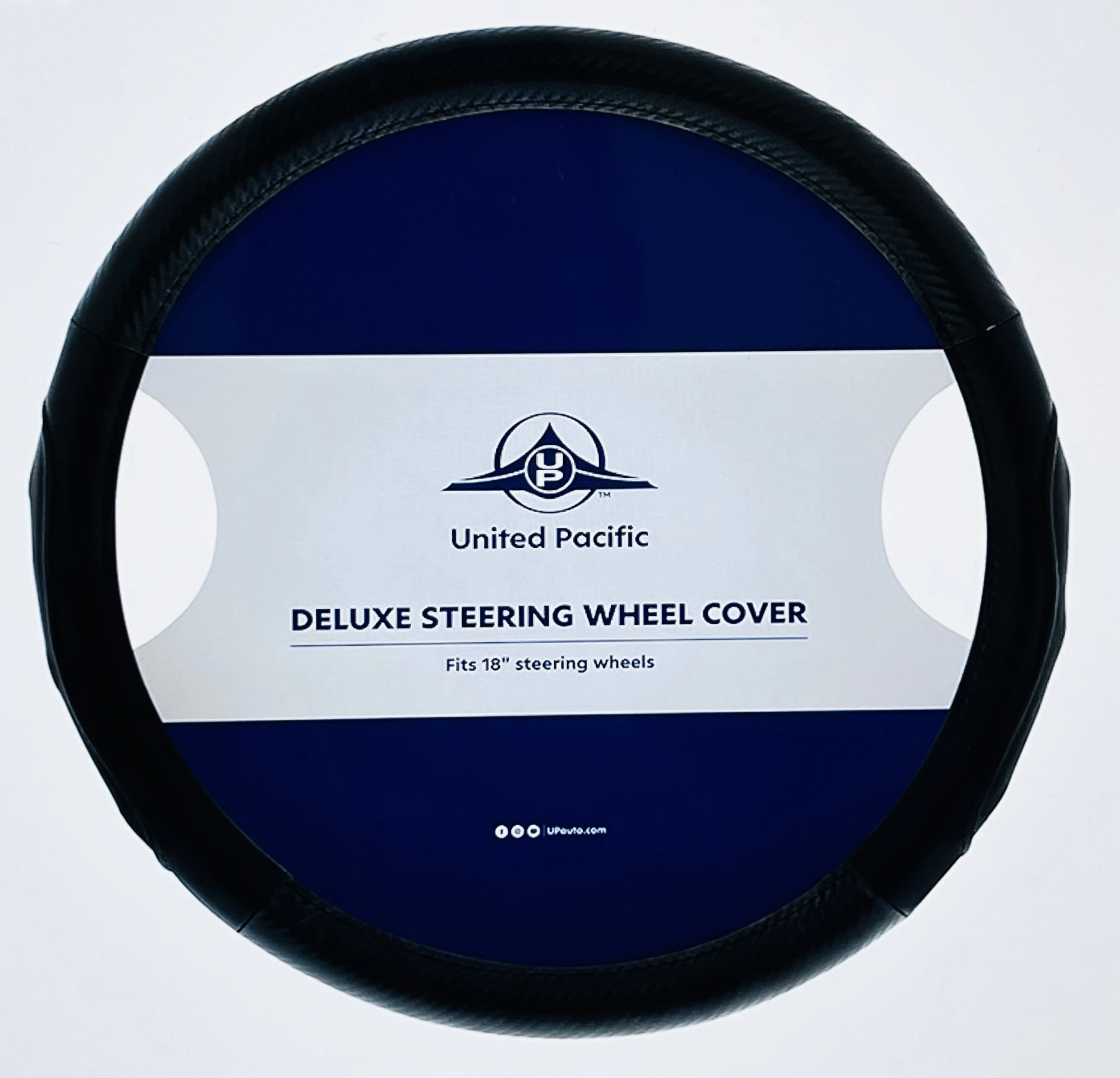 18″ CARBON FIBER PATTERN STEERING WHEEL COVER – BLACK STITCHING